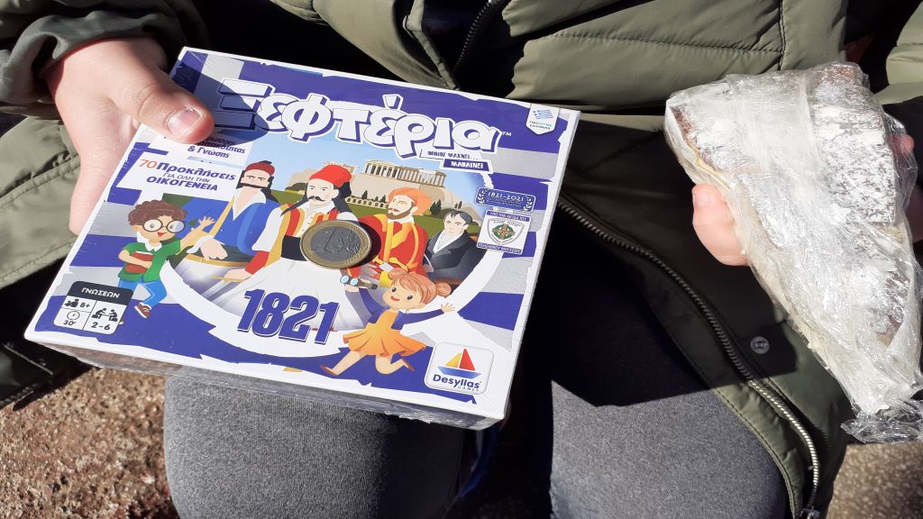 Φέτος, οι τυχεροί πήραν δώρα παιχνιδιάρικα και επετειακά! Το Σχολείο μας, τιμώντας τα 200 χρόνια από την Ελληνική Επανάσταση του 1821 δώρισε παιχνιδοβιβλία (Α' Δημοτικού), καρτοπαιχνίδια (Β'-Δ') και επιτραπέζια (Ε'-Στ').