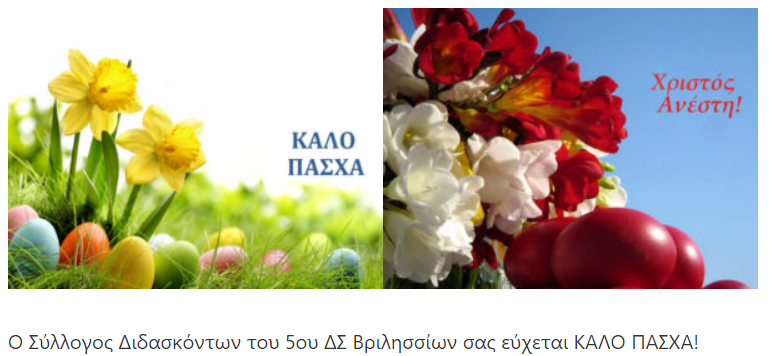 Κλείνοντας θα θέλαμε να σας εκφράσουμε τις ευχές όλου του Συλλόγου Διδασκόντων για Καλή Ανάσταση και Καλό Πάσχα, με υγεία, ευτυχία και χαρά!